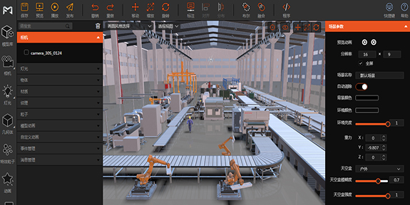 打造数字孪生产线,模拟产线场景、工艺流程、设备动作等内容,实现产线记录与产线监控,也可用于对外展示,炫酷科技效果。